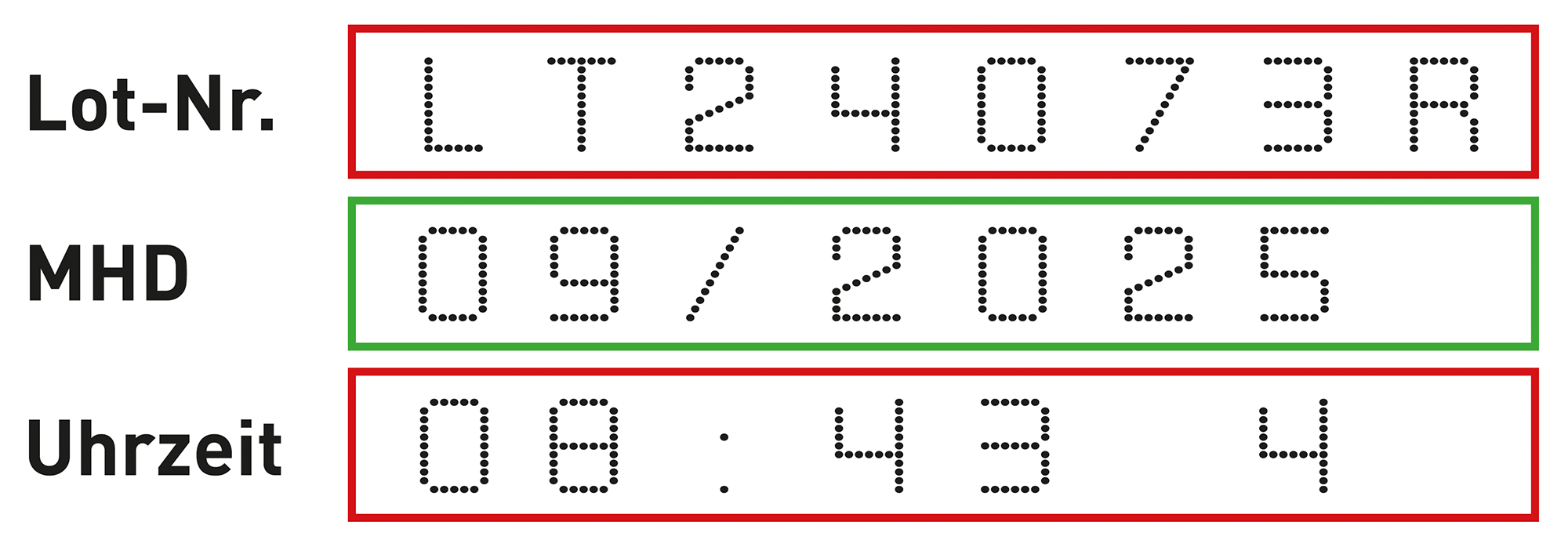 Grüne Umrandung MHD (Mindesthaltbarkeitsdatum